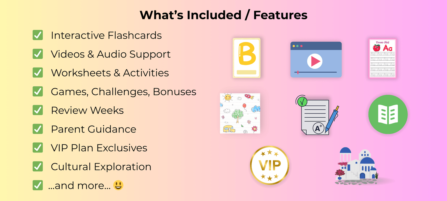 Parents and students are never left guessing: the system comes with a handbook with clear instructions, tips, and guidance making learning Greek both structured and fun.